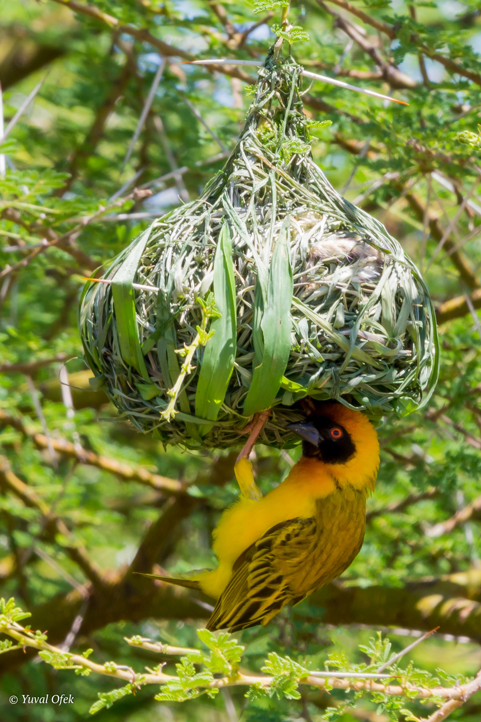 Speke's Weaver in a final stage of building its nest