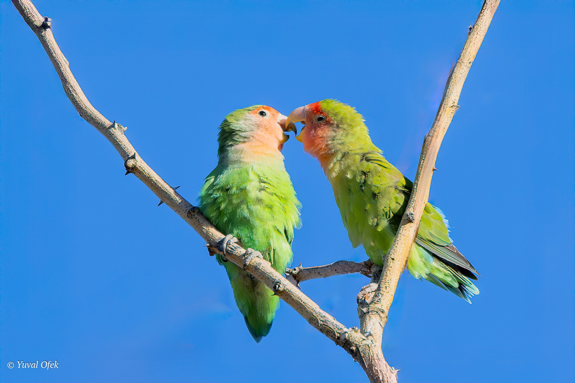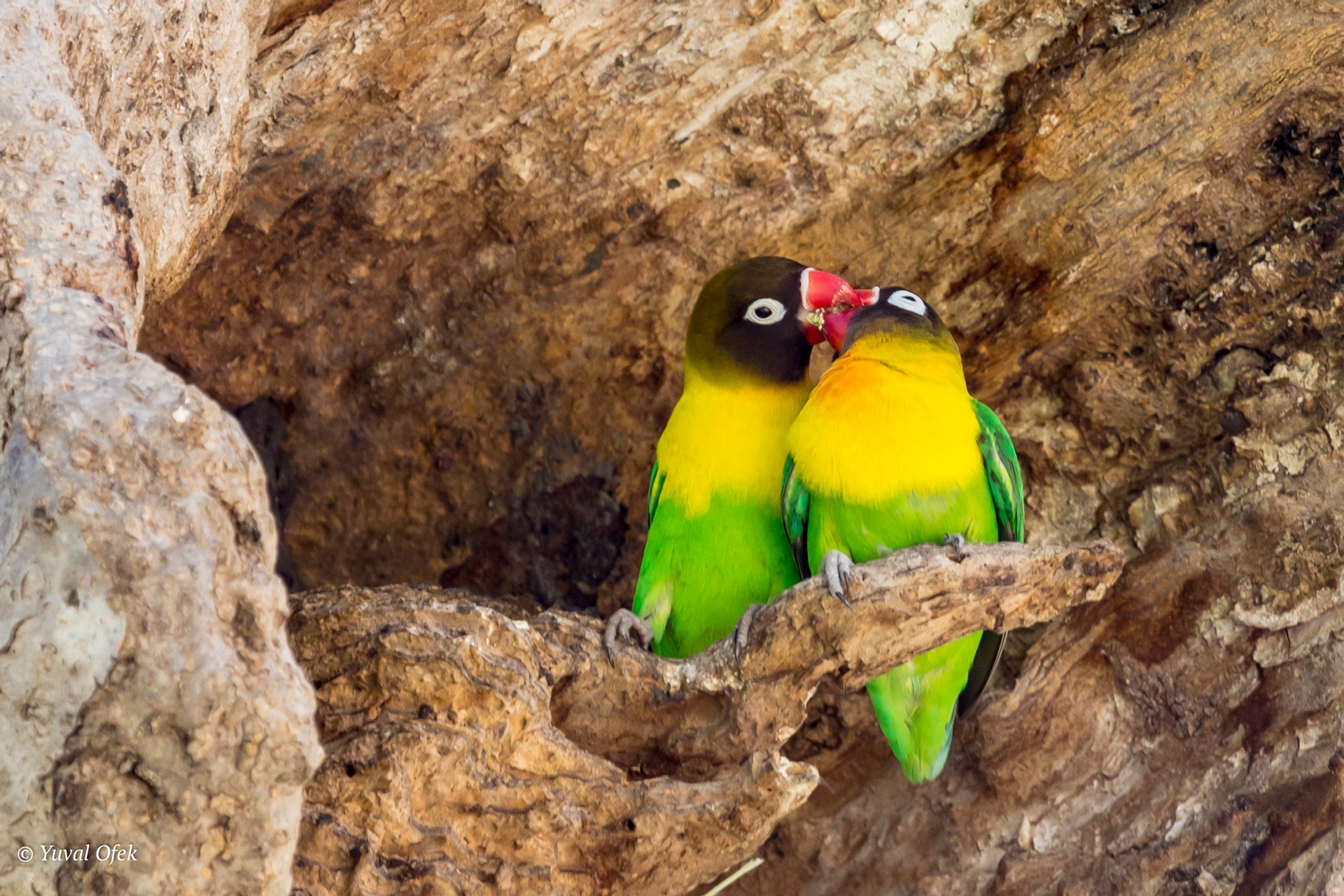 Fischer's Lovebird kiss. They can do it all day long...