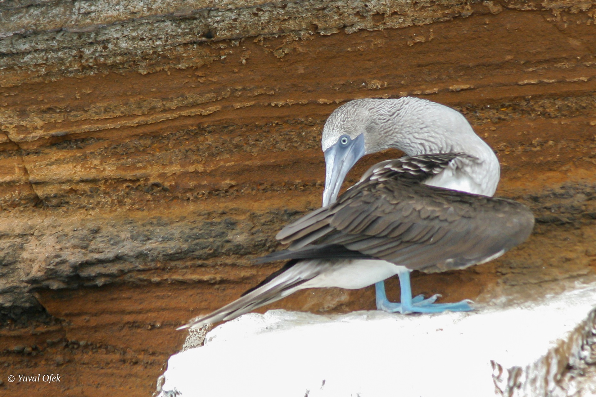 Blue footed booby preening