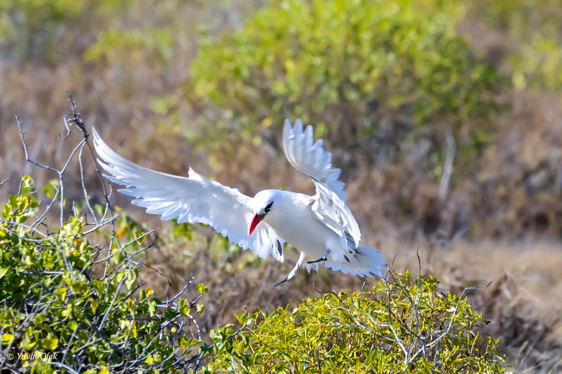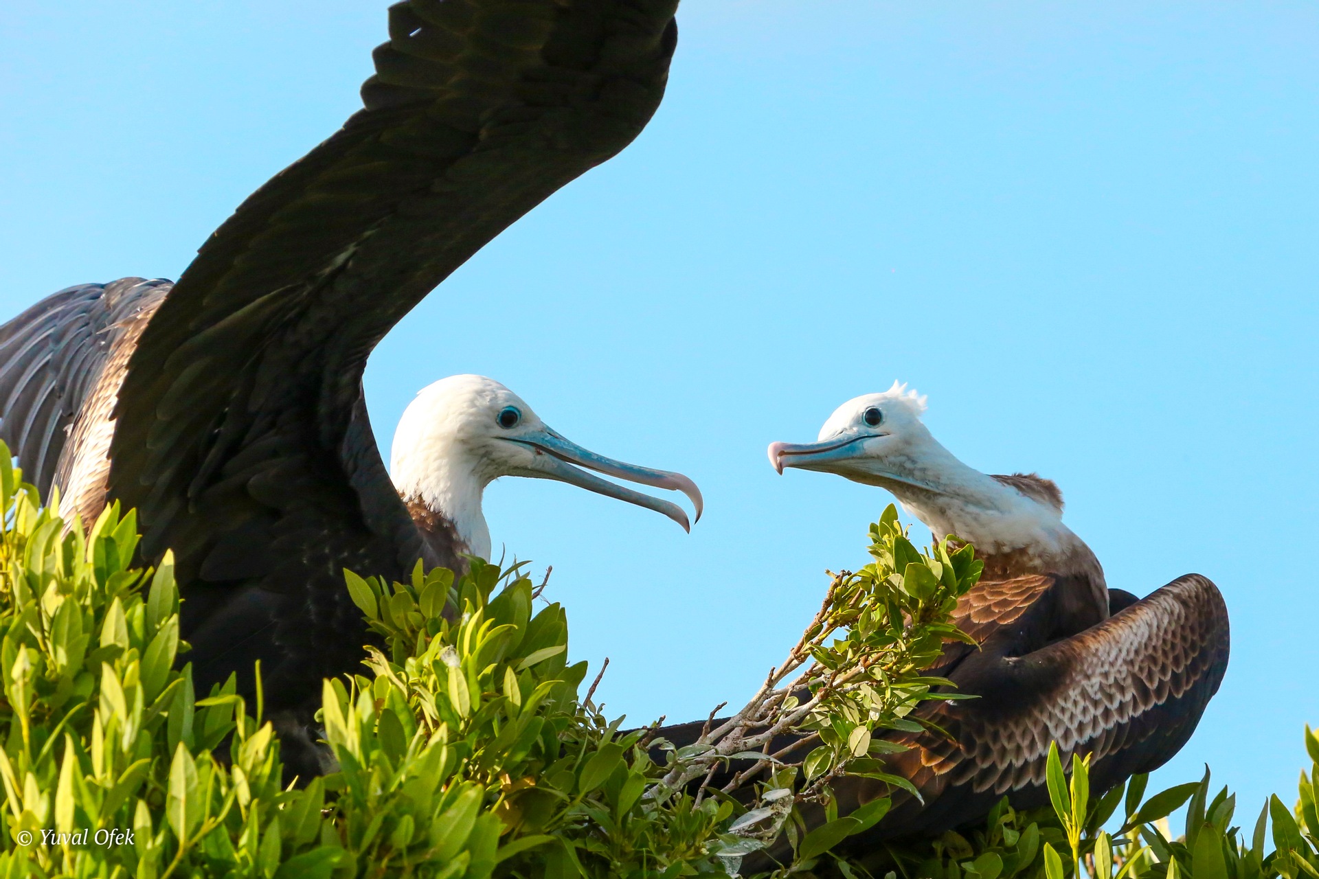 Magnificent Frigatebird returning to the nest