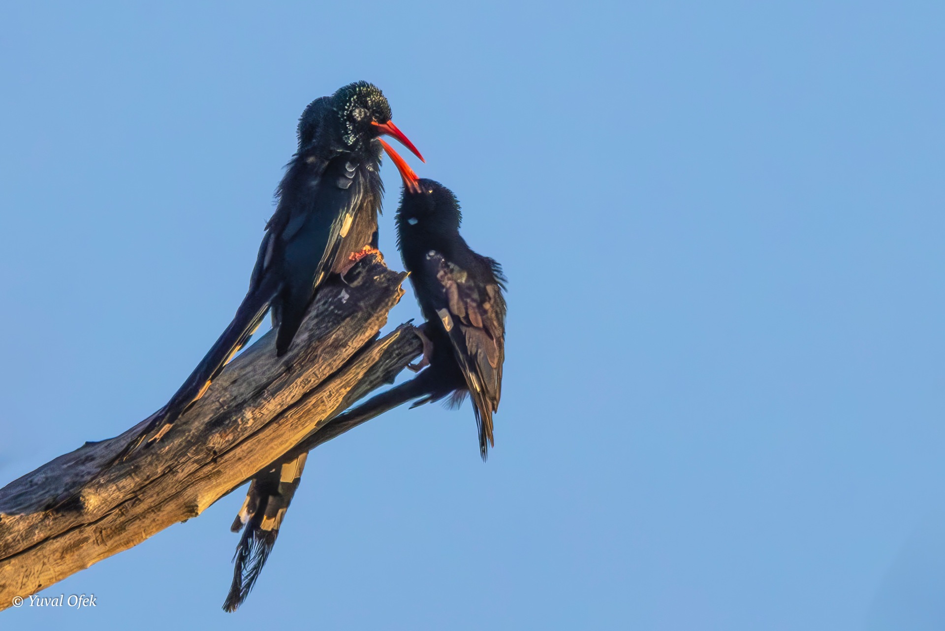 Green Woodhoopoe feeding their chick