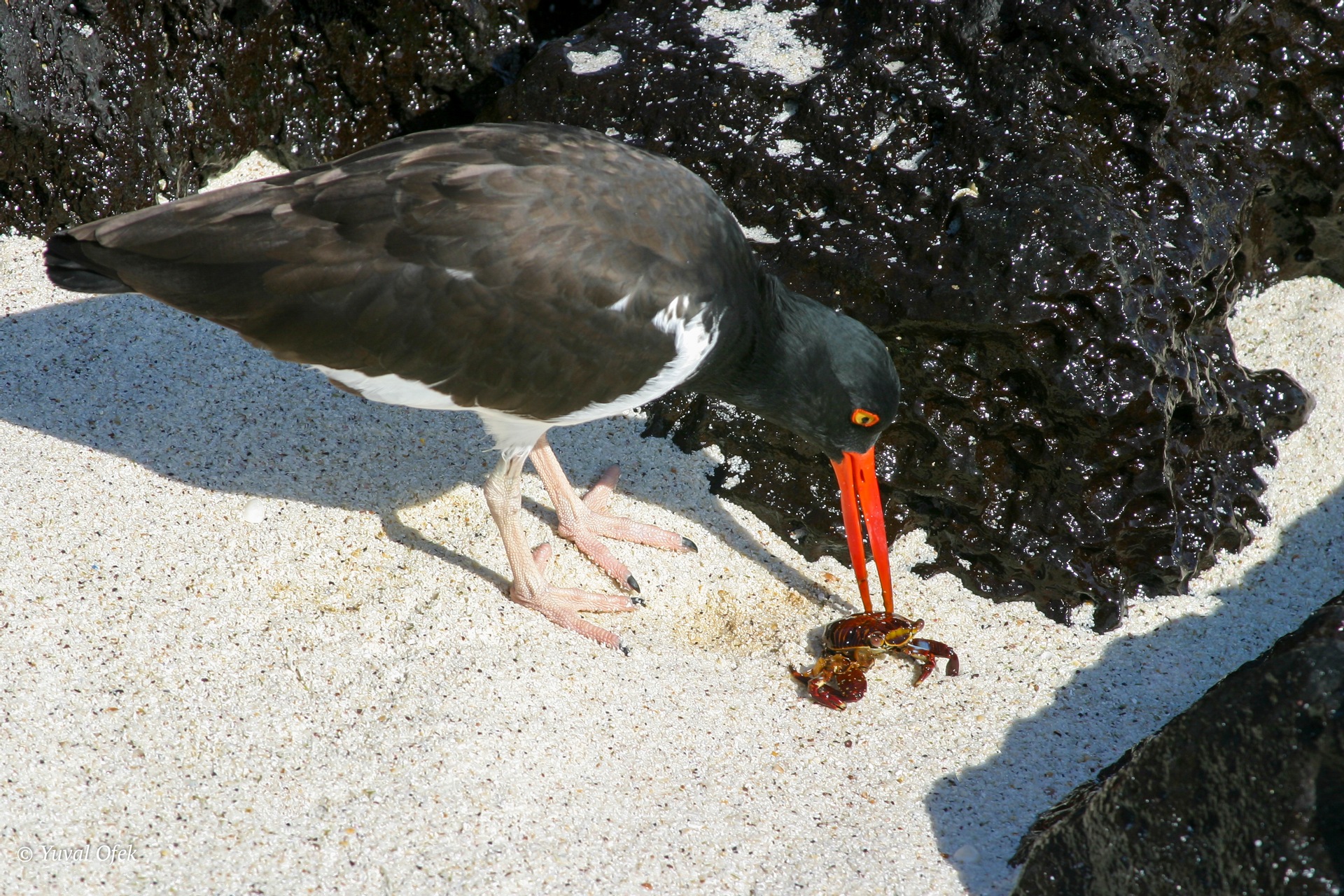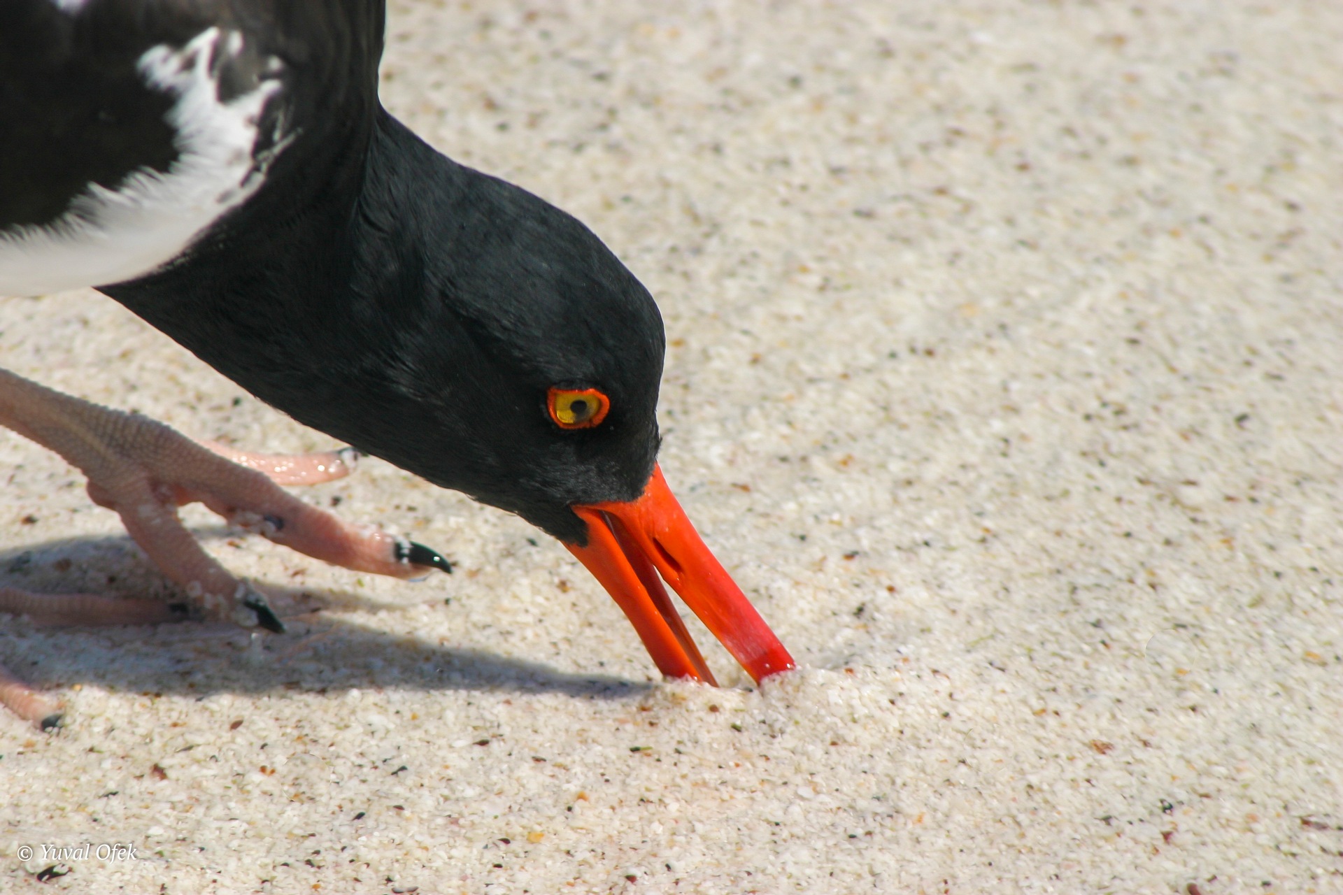 American Oystercatcher poking the sand in search of food