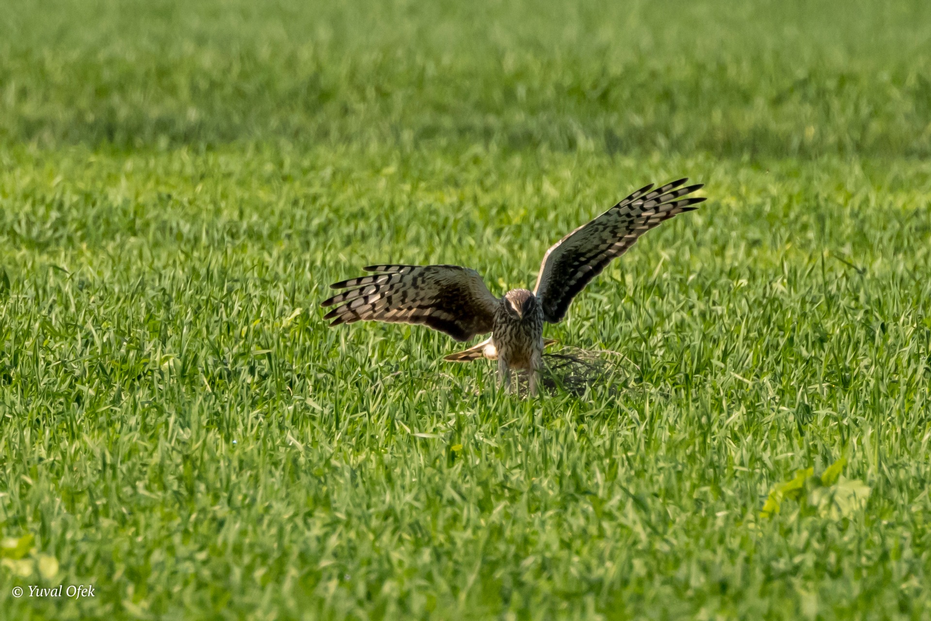 Lesser Kestrel just after catching a butterfly caterpillar