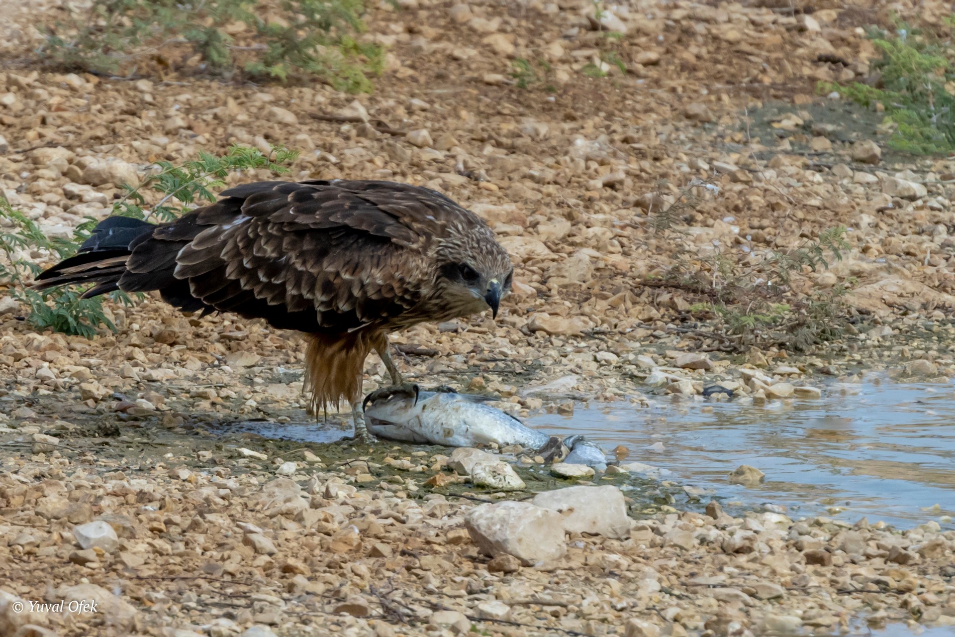 Black Kite darts on a dead fish