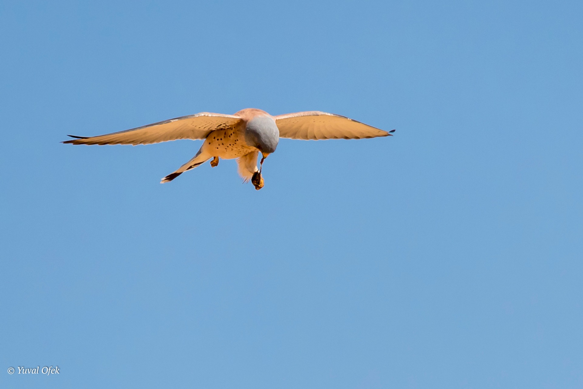 Lesser Kestrel feeding in the air