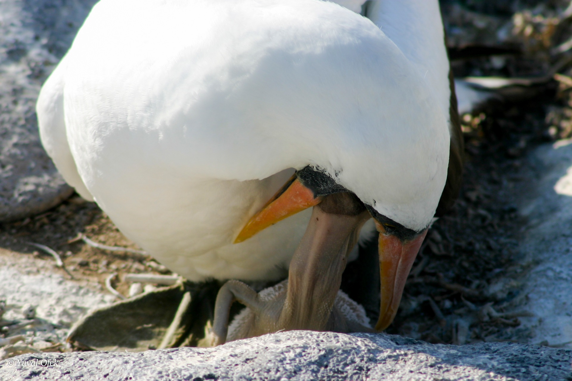 A just hatched Booby chick in frenzy feeding