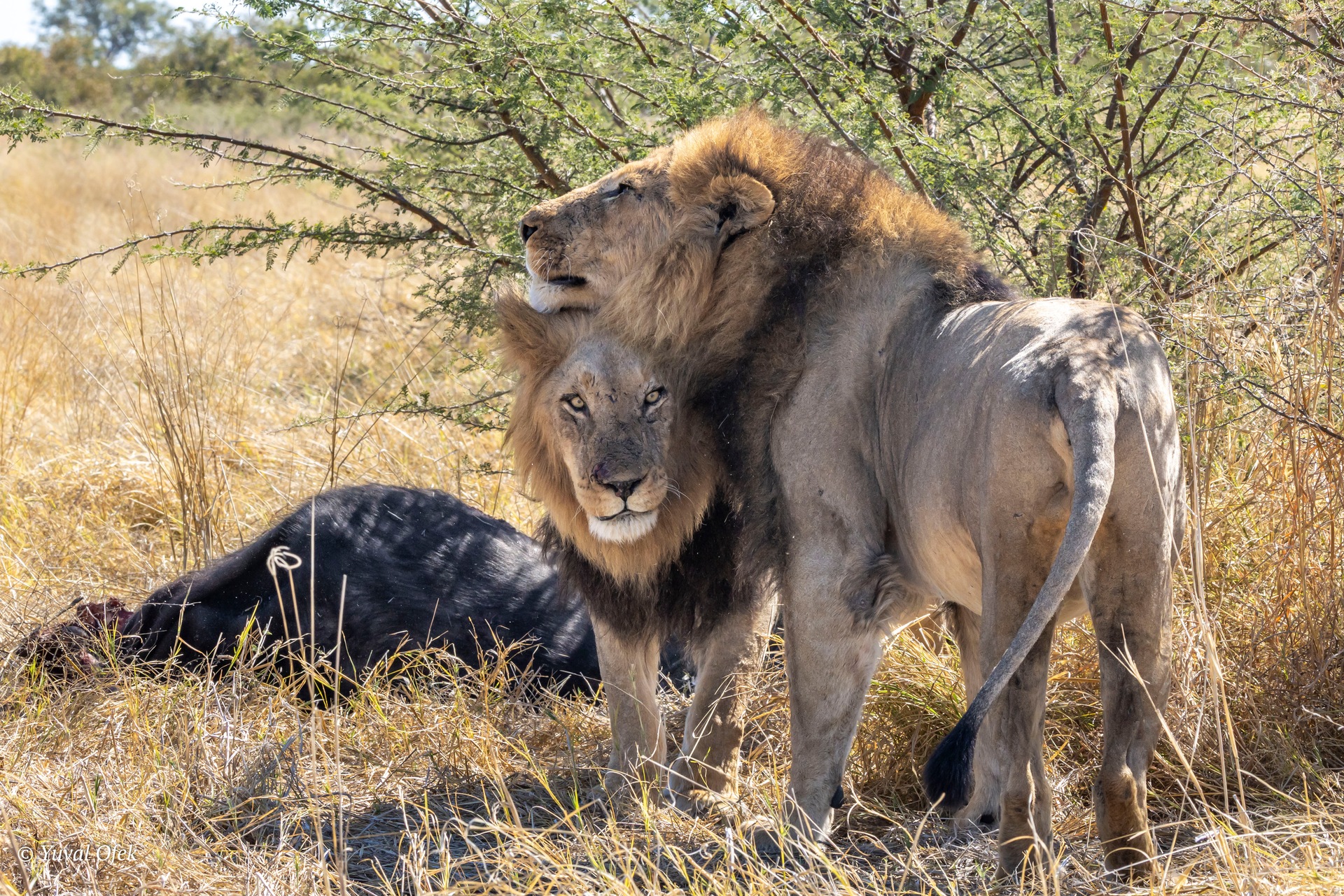 Lions are large, social cats that live in family groups called prides, typically made up of related females, their cubs, and a small number of males. Native mainly to sub-Saharan Africa, they thrive in savannas, grasslands, and open woodlands. Lions are known for their cooperative hunting, with pride members working together to bring down prey, and for their strong social bonds, often seen resting, grooming, and playing together. They spend much of the day resting in the shade and are most active in the early morning and late afternoon, when they patrol their territory or hunt. You can spend many hours observing a single lion or a pride, and at any moment, you might be surprised by sudden activity. This gallery is a small collection of my encounters with lions through the years. They are truly unique creatures.