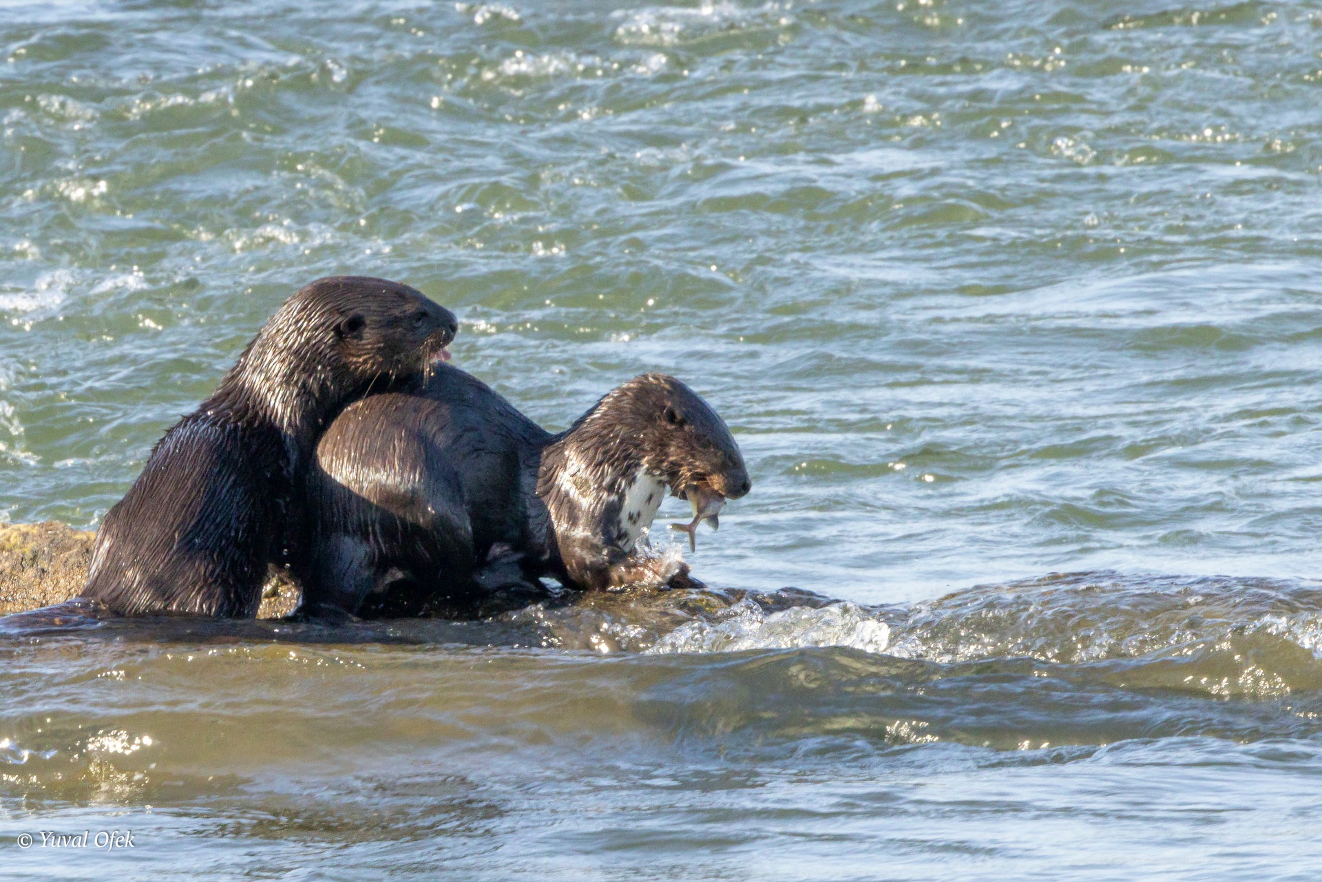 Spotted-nacked Otter eating a fish