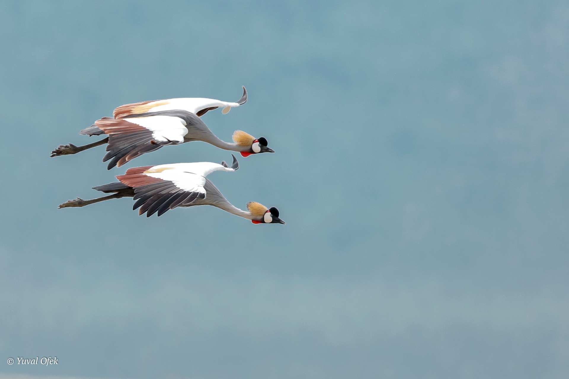 Grey Crowned Crane A marvelous coordinated flight