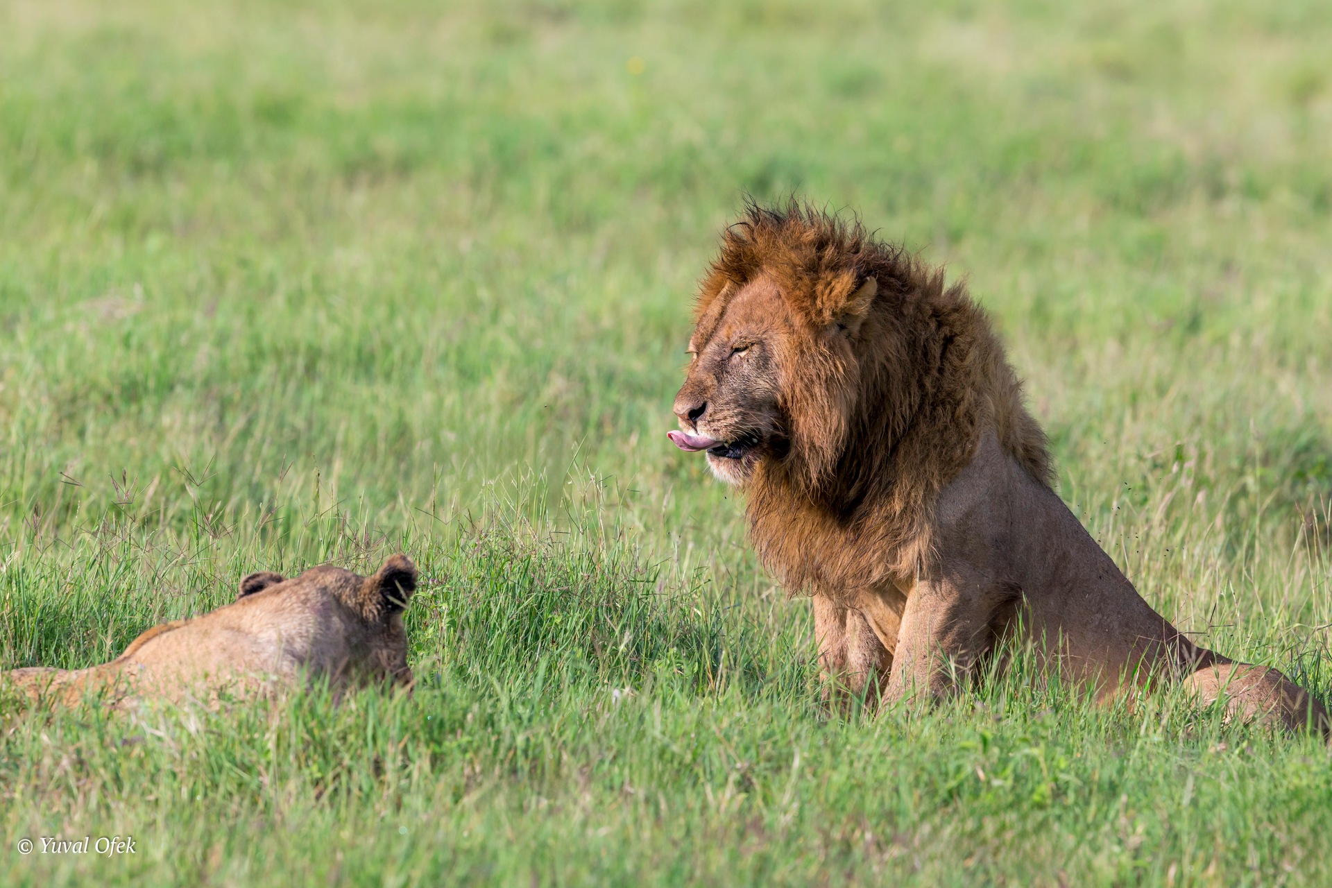 A subtle gesture from a male lion to a bored lioness...