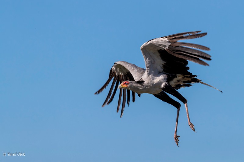 A Secretary Bird's cumbersome landing. These birds usually prefer to walk