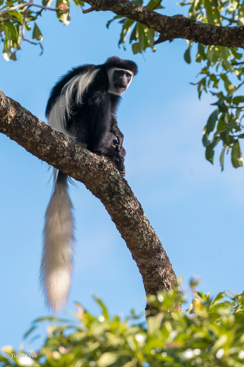 Black-and-white Colobus with its amazing fluffy tail