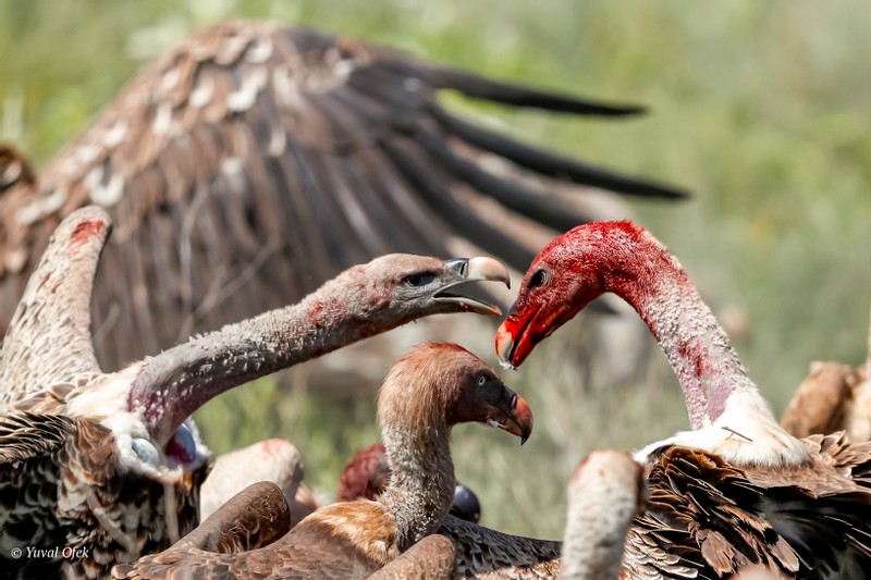 Ruppell's Vultures fighting over a carcass meal