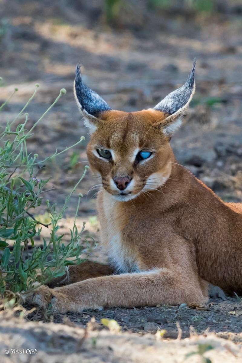A rare photo of a female Caracal. She has a damaged eye