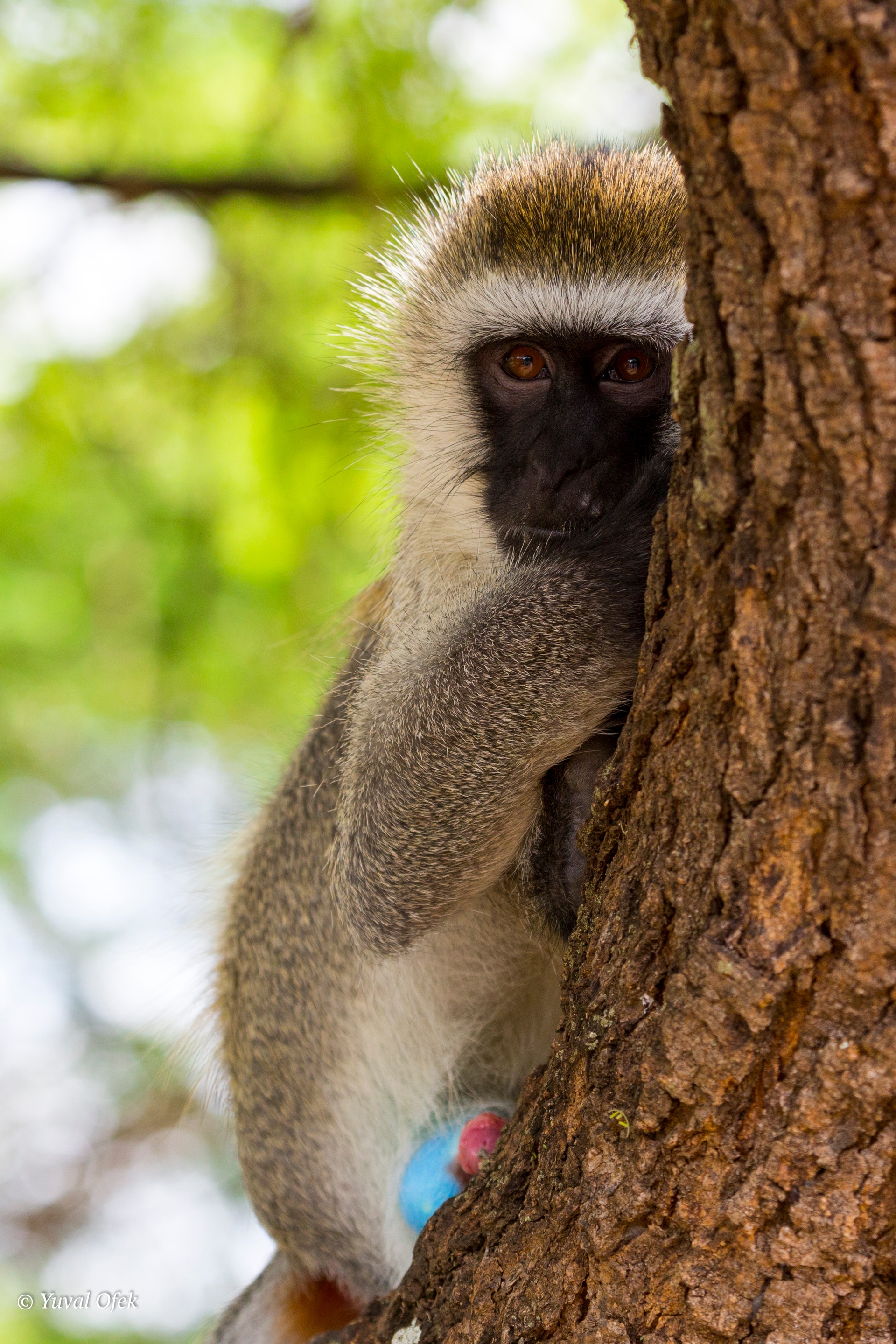 A Shy peek Vervet monkey (Blue balls monkey) Tarangire National Park