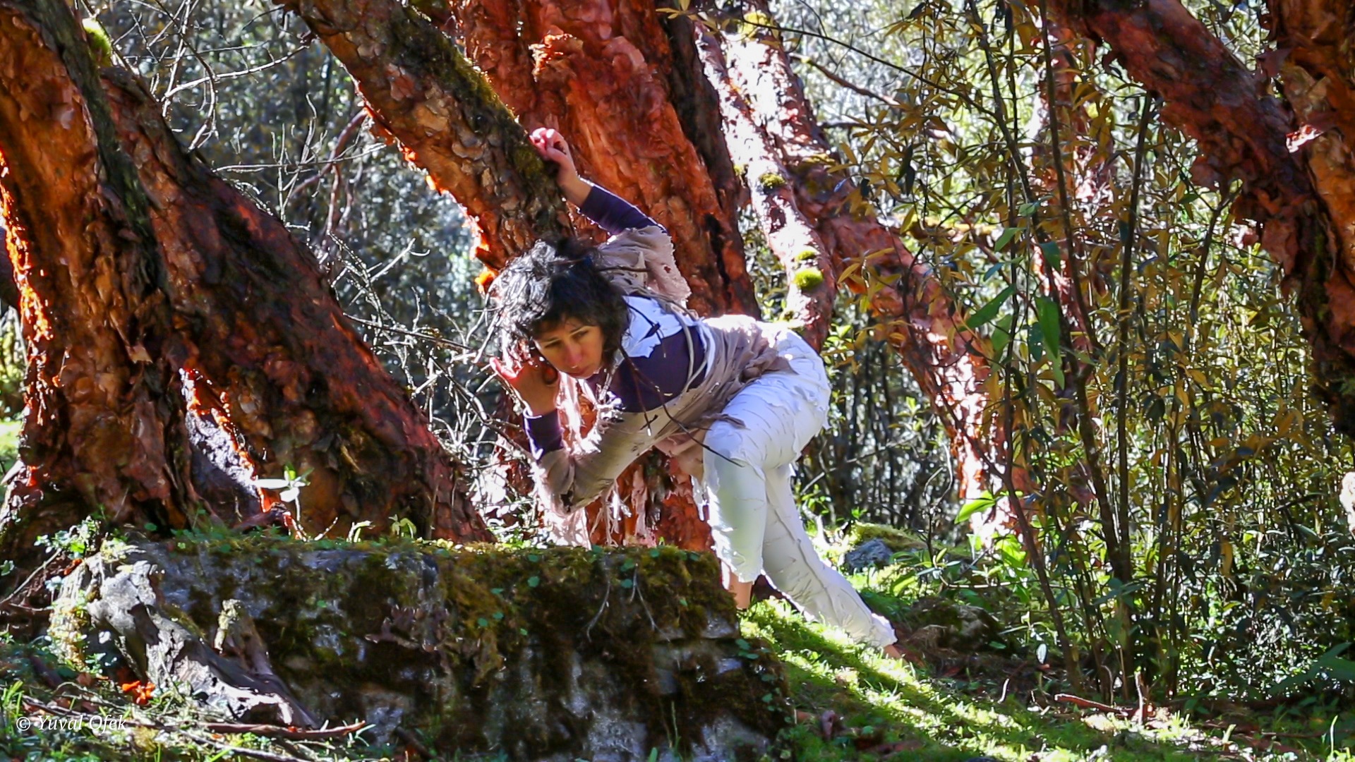 Movement is a fundamental element of nature. Dance provides the space and time to observe and experience movement as creation. It may arise unconsciously and even randomly, or consciously and with intent. The dancer relates to nature as an ancient home, lingering within it until a movement emerges in response. That movement may blend with nature, echo it, or create a striking contrast. And so, a dance is born—improvised, with nature itself as a partner in the duet.